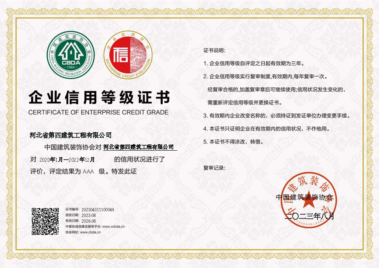 2023年河北省建协AAA信用等级证书