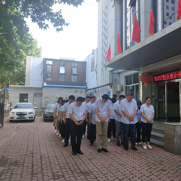 5月24日上午8点30分,九分公司30名职工着装整齐在办公楼前列队肃立,送别袁隆平院士。党群办主任张博怀着沉痛的心情介绍了袁隆平院士的生平及成就,职工集体缅怀“稻田守望者”,追忆袁隆平院士的生平、为人与治学,怀念先生走过的伟大而不平凡的一生。随后,职工们面向袁隆平院士的家乡方向,集体默哀三分钟,表达对袁隆平院士的深切悼念、哀思与敬意。党总支副书记刘喜良要求广大职工学习袁隆平院士无论身处何种环境,都能秉持坚定执着的信念和永不放弃的精神,并将之运用到实际工作中,更好的服务于企业,为分公司的发展贡献力量。