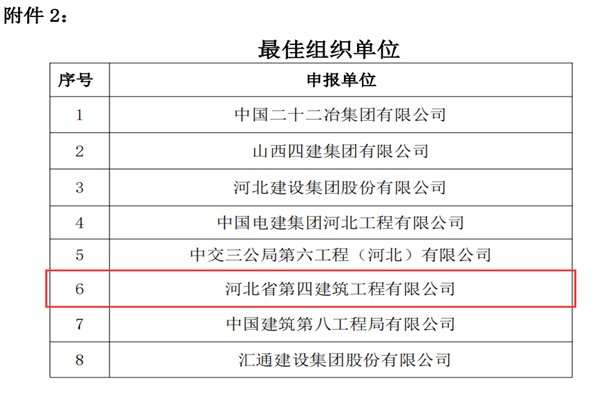 7月28日,河北省建筑业协会公布了第三届建筑业企业工法大赛和第五届河北省建筑业“燕赵杯”高价值专利大赛结果。公司申报的5项工法、6件专利,经过文本初审、发布交流、现场答疑和专家评审等环节严格遴选,全部获奖,公司获专利“最佳组织单位”荣誉。