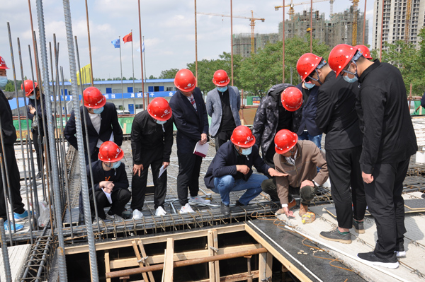 在施工现场,16名青年员工在项目经理李超的带领下,先后观摩了预制桁架混凝土叠合板,装配式建筑采用的高强度、高延展性CRB600H型号钢筋,并上到正在施工的一层顶板处参观、学习了预制桁架混凝土叠合板施工工艺以及管线预留预埋施工工艺。每到一处,李超都为大家进行详细讲解,大家认真听讲,并不时提问。