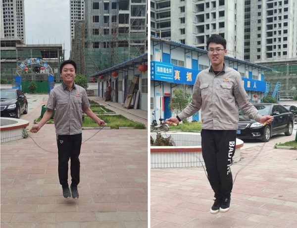 各项目部根据场地条件自行制定比赛内容,让职工们自由选择,有羽毛球、跳绳、踢毽子等。所有活动中比较热闹的有许昌项目部的跳绳比赛,青年职工回军帅、唐文耀、李诗奇、刘彦、肖博文等两人摇、多人鱼贯顺序跳的长绳赛,李政良,高岩单人双手摇、自摇自跳的短绳赛,他们配合协条性好,单次跳的数量最多,迎来场外职工阵阵喝彩。