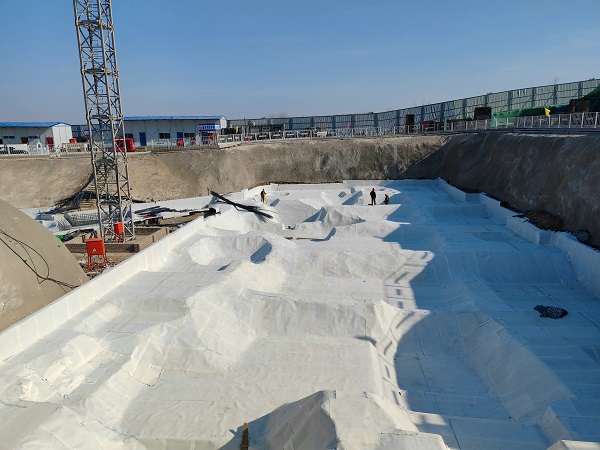 项目部采用的预铺反粘防水施工技术,防水材料共两层,下面一层采用高分子双面自粘防水卷材,卷材背面带有自粘层,施工时在进行基层处理后,卷材无需加热,可直接粘贴在基面上,操作简便、安全环保。下面一层处理好后,上面一层采用强力交叉层压膜预铺反粘防水卷材,该材料自带保护层,无需再进行水泥砂浆保护层施工,大幅缩短了施工间隔时间。相较于传统的SBS改性沥青防水卷材工艺,该方法施工难度小,现有工人经简单培训上手快,用工数量少,综合成本降低。项目部采用招标的方式,精心挑选出有责任心、专业能力过硬,并对工程质量重视程度高的专业分包队伍组织施工,以全力确保工期履约。